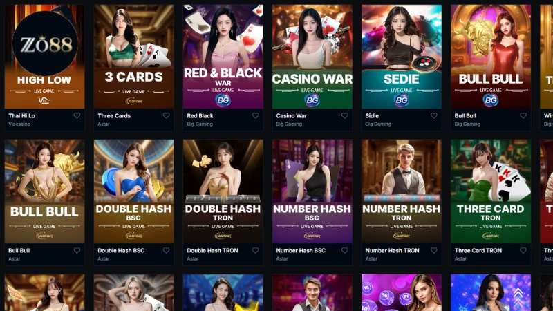 Trải nghiệm người chơi sẽ càng sống động hơn khi được khám phá thiên đường casino trực tuyến. Tại đây, bạn sẽ hòa mình cùng lối chơi hấp dẫn với các dealer người thật. Không những thế, kết quả tường thuật trực tiếp từ sòng bạc cho phép thành viên theo dõi dễ dàng. Một số bộ môn tiêu biểu khó bỏ lỡ ở ZO88 như sicbo, roulette, bầu cua,...