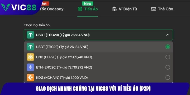 Giao dịch nhanh chóng tại VIC88 với ví tiền ảo P2P