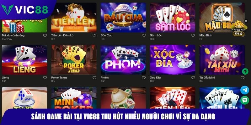 Sảnh game bài VIC88 thu hút nhiều người chơi vì sự đa dạng
